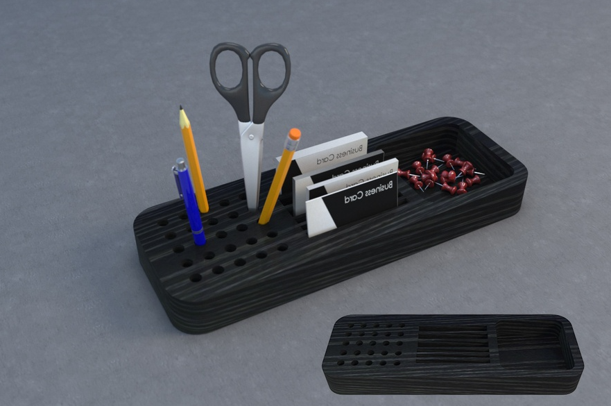 Một khay đựng đồ dùng trang trí bàn làm việc với thiết kế đa năng nhỏ gọn sẽ là không gian lưu trữ tất cả những đồ văn phòng phẩm của bạn một cách gọn gàng nhất. Bạn vừa có thể cắm những cây bút, để kẹp giấy thậm chí là danh thiếp của mình trên đó mà không sợ bị hư hỏng hay thất lạc, thật tiện lợi phải không nào?